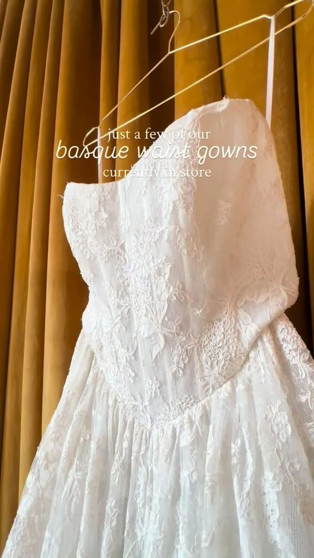 Our curated vintage collection serves as design inspiration for much of our special order work, but can also be purchased off the rack. This collection does stay small, in quantity and size - brides were tiny back then! They are legit antiques - usually handmade and fragile and priced as such, mostly around $500. They require a little imagination and can be viewed during a weekday 1-hour Vintage & Sample appointment. You can also visit during our Vintage & Sample Walk-In Hours